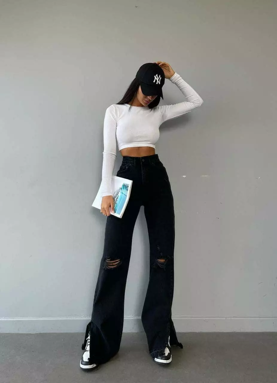 Джинси труби з розрізами 1375