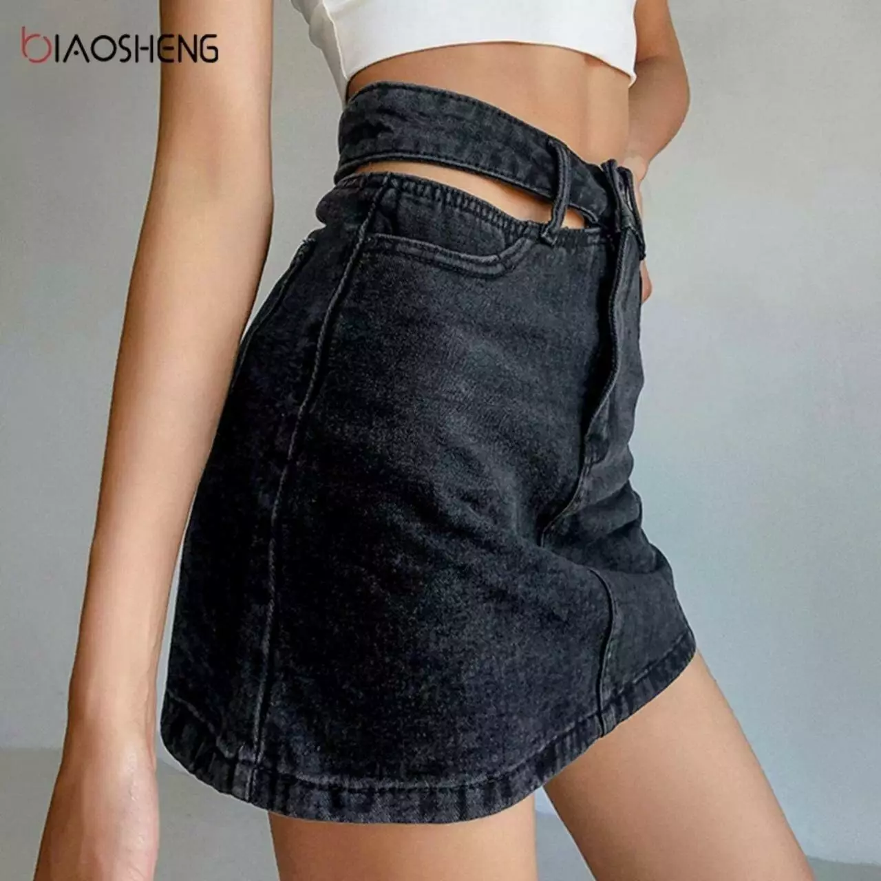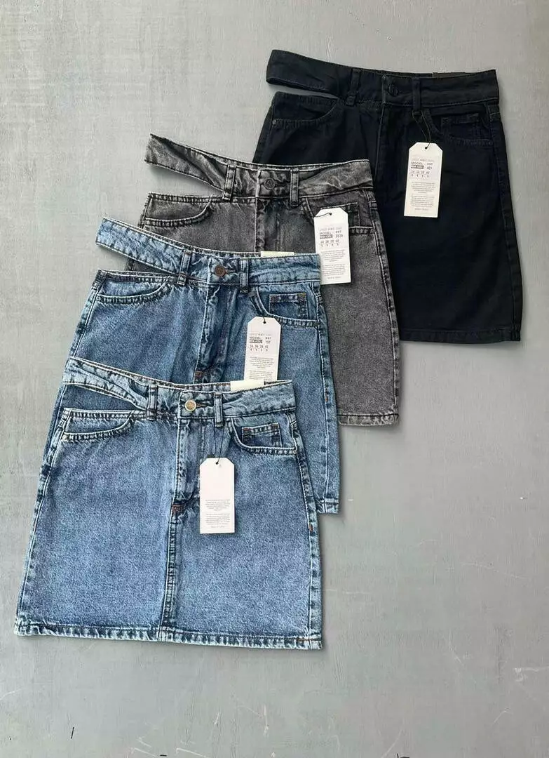 Джинсова спідниця з вирізаним поясом 035