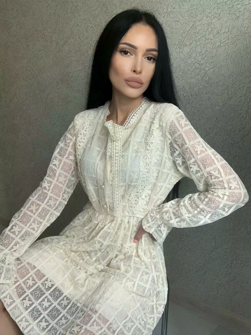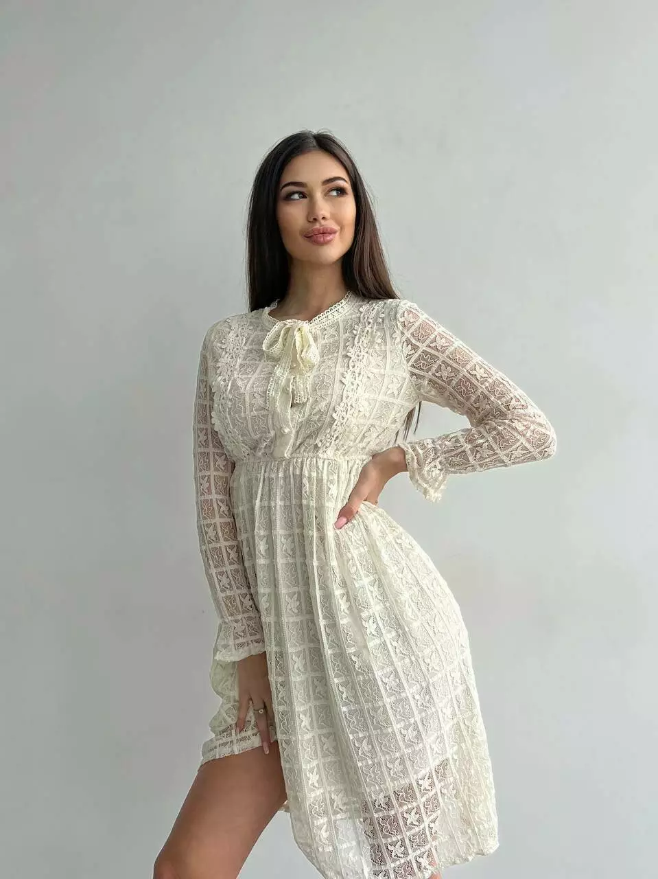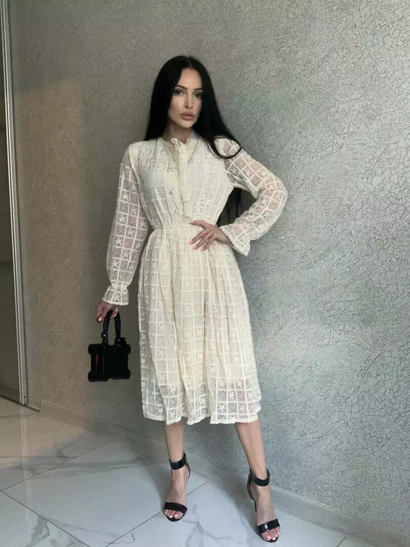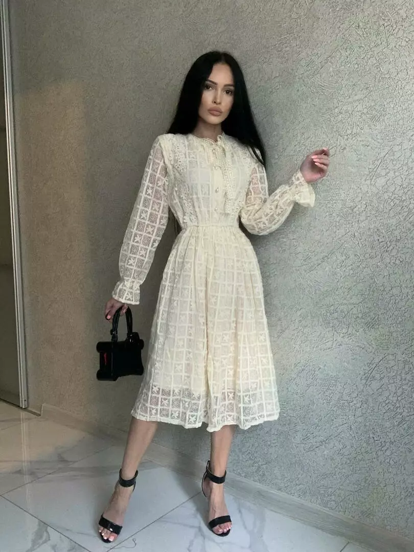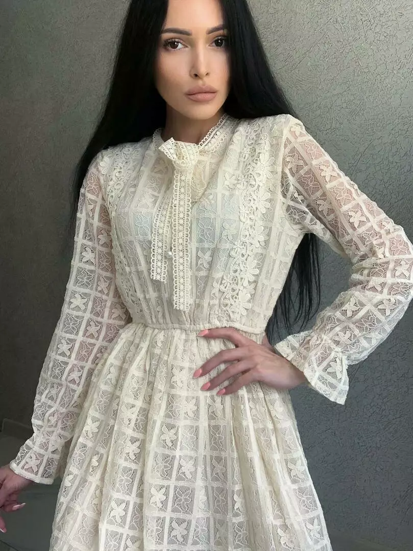 Ніжне гіпюрове плаття жіноче на підкладі з довгим рукавом Колір айворі 1907