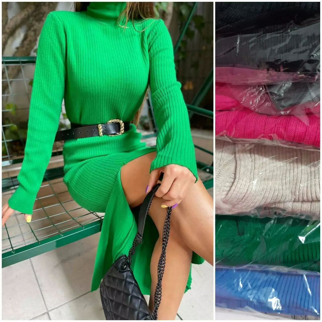 - Фасон платья: Вязаное