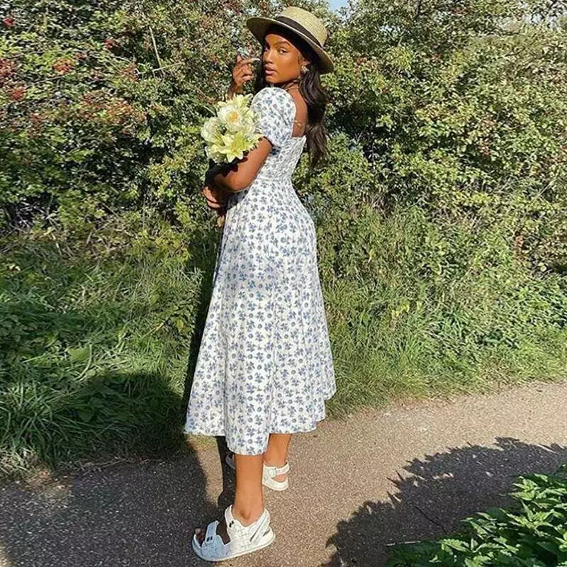 Сарафан у дрібну квіточку з виділеним бюстьє та розрізом 402
