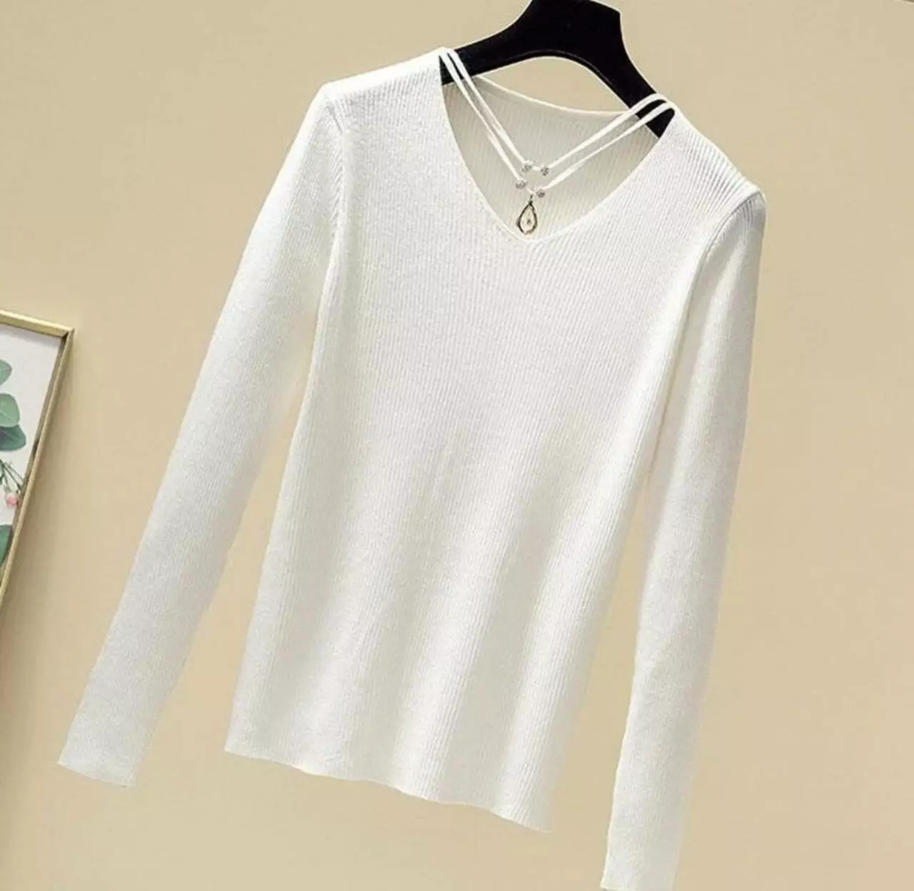 Стильна жіноча кофта з кулоном біла 609