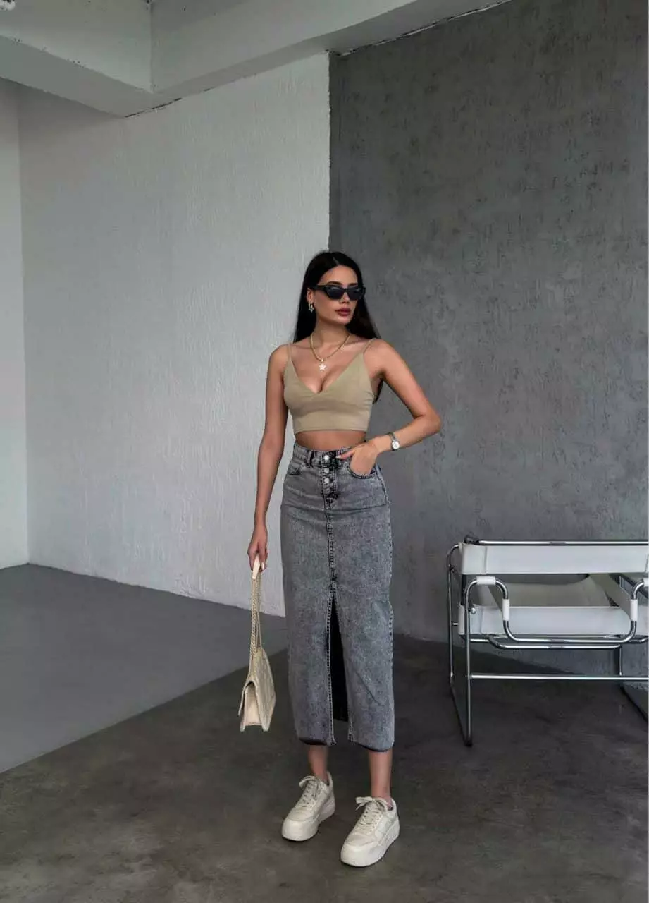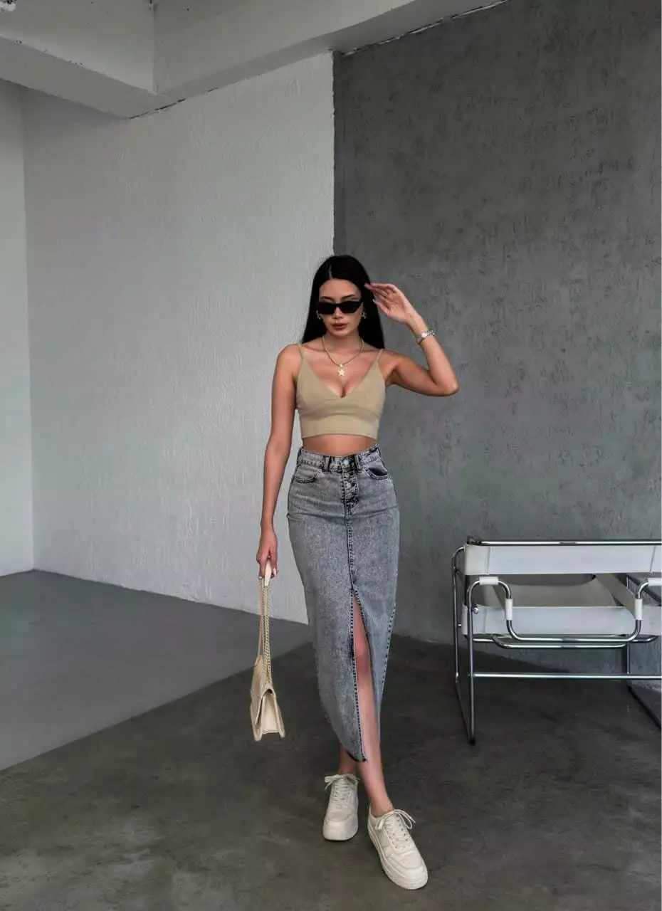 Жіноча довга джинсова спідниця 1013-2