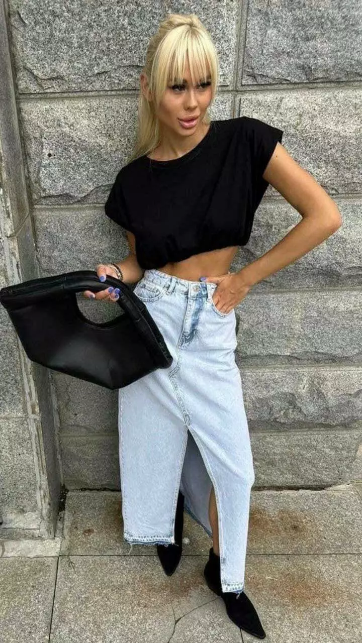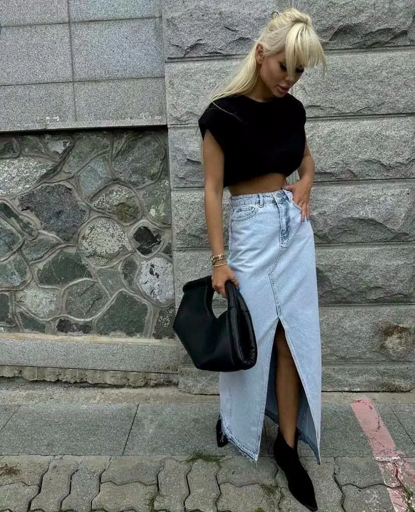 Жіноча довга джинсова спідниця з розрізом 3102